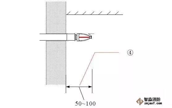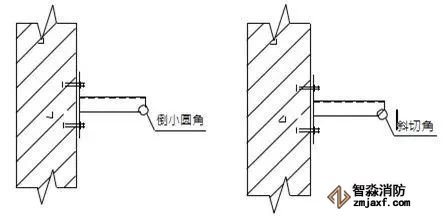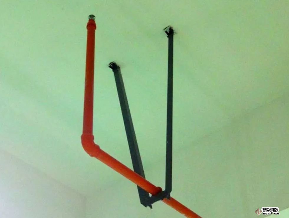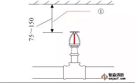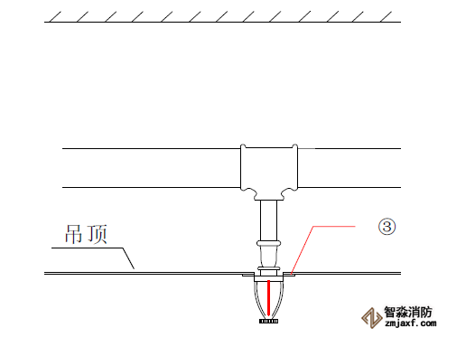 2、有吊頂?shù)南麓剐蛧婎^安裝噴頭根部應(yīng)與吊頂平齊;為避免定位不準(zhǔn),可在吊頂龍骨標(biāo)高確定后再安裝下噴支管;下噴頭與三通之間的短管長度不宜超過150mm
