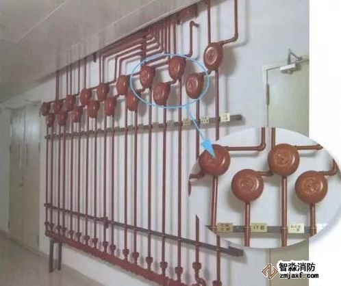 1、無吊頂時(shí)設(shè)置上噴頭;有吊頂時(shí)設(shè)置下噴頭,當(dāng)?shù)蹴斏戏綈烅數(shù)膬艨崭叨瘸^800mm,且其內(nèi)部有可燃物時(shí),要求設(shè)置上噴頭;噴頭在系統(tǒng)沖洗試壓合格后安裝