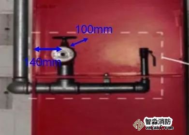 閥門中心距箱側(cè)面料140mm,距箱后內(nèi)表面為100mm,允許偏差±5mm;消火栓箱體安裝的垂直度偏差≤3mm