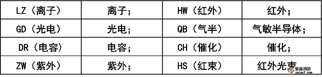 火災(zāi)探測器產(chǎn)品型號編制示例: