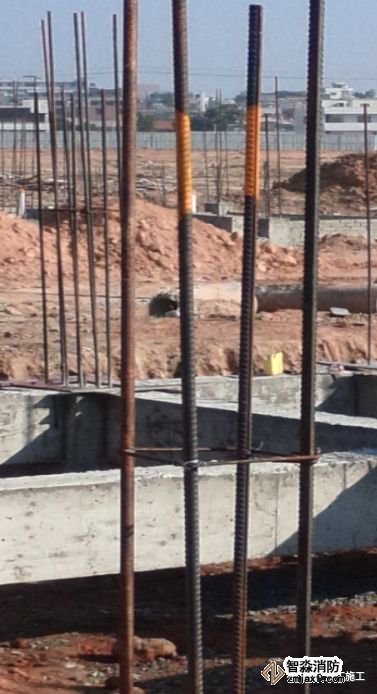 利用結構柱內(nèi)主筋作引下線時,每條引下線不得少于兩根主筋,每根主筋直徑不能小于Ф16㎜,防雷引下線位置最好對稱.引下線間距:一級防雷建筑:≤18m;二級防雷建筑:≤20m;三級防雷建筑:≤25m。按設計要求找出全部主筋位置,用油漆做好標記,距室外地面0.5m處焊接斷接卡子,隨鋼筋逐層串聯(lián)焊接至頂層,并焊接出屋面一定長度的引下線Ф12㎜的鍍鋅圓鋼,以備與避雷帶連接。柱內(nèi)引下線與梁內(nèi)均壓環(huán)可靠焊接,采用雙面焊接,焊縫雙面焊接長度大于6D,下端與建筑物樁基鋼筋及基礎底梁鋼筋的兩根主筋焊接。每層各引下點焊接后,隱蔽之前,均應請現(xiàn)場施工員及監(jiān)理進行隱檢,同時應填寫隱檢記錄。