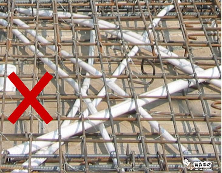 局部電線管太密集,部分線管間距少于15mm,線管重疊超過三層,影響樓板結構。