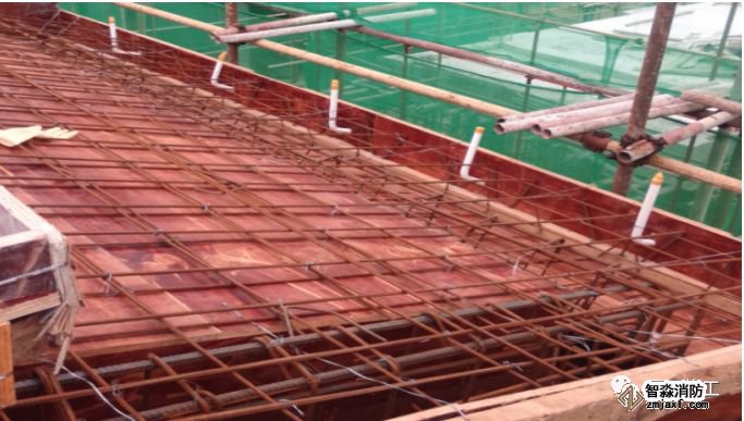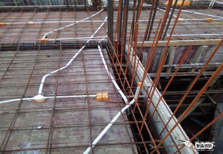 管線與底筋用鐵絲綁扎牢固,避免線管移位損壞,PVC管路固定點的間距為不大于1m,距端頭、彎曲中點不大于500mm。