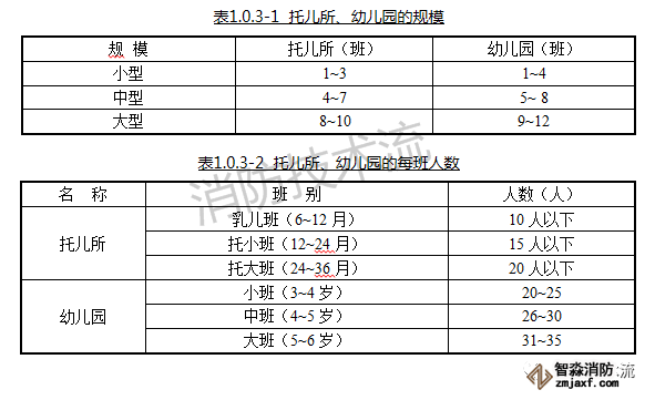 由此可知,幼兒園規(guī)模由班級數(shù)量確定,結(jié)合表格可以得出設(shè)置5個及以上班級的幼兒園應設(shè)置火災自動報警系統(tǒng)及自動噴水滅火系統(tǒng)。