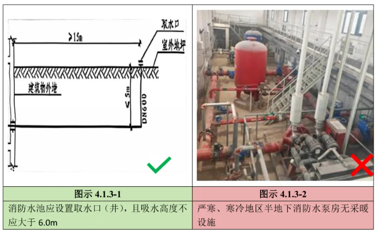 1 消防水池應(yīng)設(shè)置取水口(井),且吸水高度不應(yīng)大于6.0m?!緢D示4.1.3-1】