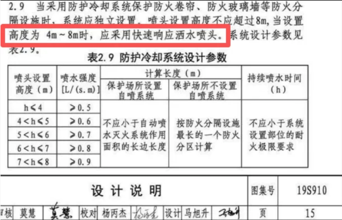 5.0.15 當采用防護冷卻系統(tǒng)保護防火卷簾、防火玻璃墻等防火分隔設施時,系統(tǒng)應獨立設置,且應符合下列要求: